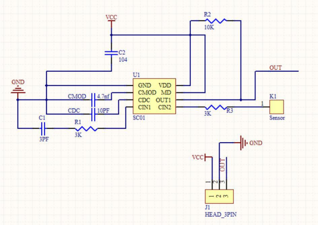 这个模块采用了三线接插件端子结构:VCC、OUT、GND,其中OUT引脚内置上拉电阻,高低电平输出,无着座时输出高电平,着座时输出低电平。简单的高低电平输出,让开发者在产品设计、使用上极为简便。